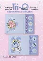 De Tri-O-Kaarten zijn kleurige kaarten met drie doorkijkjes. Het Tri-O-kaartje met de doorkijkjes voorziet u van een fraai borduurwerkje. Deze borduurwerkjes brengt u dankzij de schema's op ware grootte gemakkelijk over op het kaartje. Na het borduren werkt u de kaart af met de mooie bloemenvellen naar eigen voorkeur. Voor het decoreren van de doorkijkjes, kunt u naar keuze kleine lint bloemetjes, stickers of de kleine 3D bloemetjes van het knipvel gebruiken. Kortom kaarten veel mogelijkheden. Veel borduur plezier!