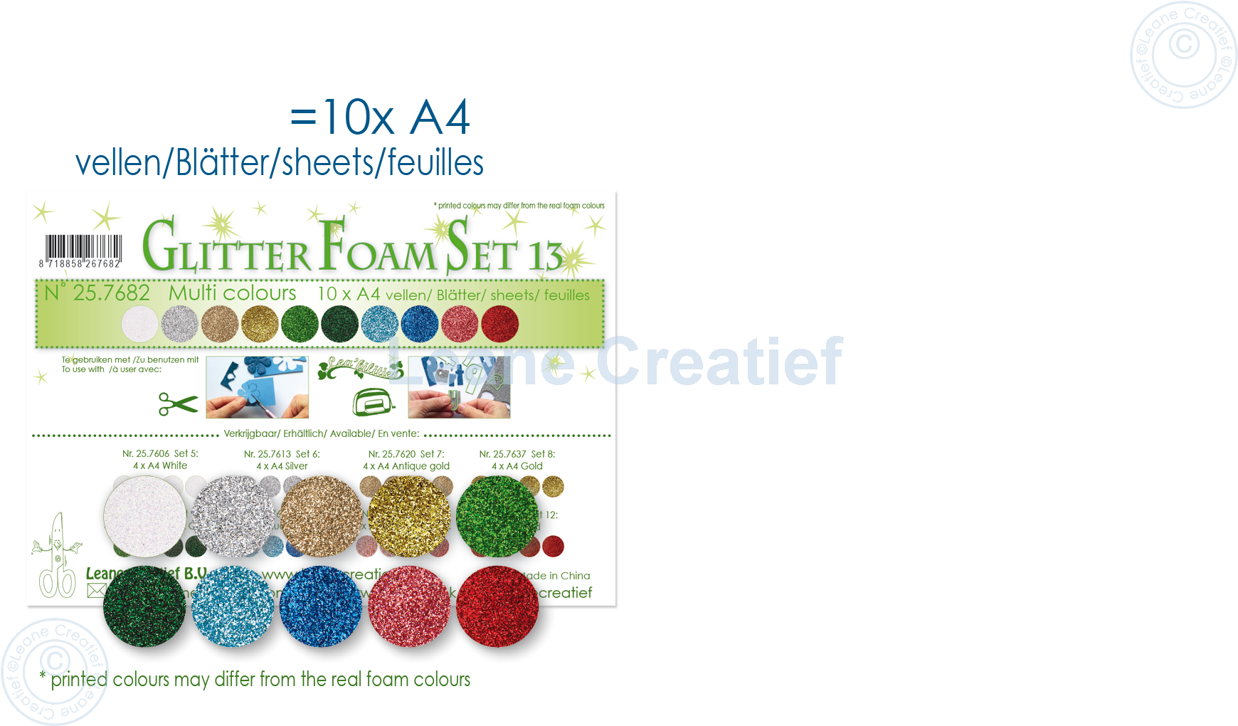 Glitter Foam set 13, 10 vellen A4 verschillende kleuren